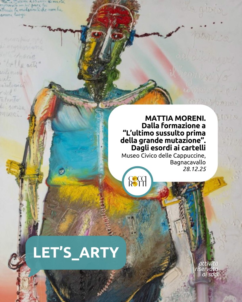 L’appuntamento è per domenica 28 dicembre al Museo Civico delle Cappuccine di Bagnacavallo che espone «MATTIA MORENI. Dalla formazione a “L’ultimo sussulto prima della grande mutazione”. Dagli esordi ai cartelli».